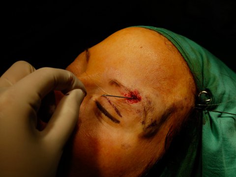 Foreheadlift a browlift- operace se provádí v celkové anestezii, řezy jsou ve vlasaté části hlavy. Operace trvá asi 2 hodiny. V průběhu operace je preparována kůže čela v hloubce, dojde k vypnutí kůže, uvolnění mimických svalů a zlepšení vzhledu čela. Kožní řezy jsou poté sešity nevstřebatelnými stehy nebo titanovými svorkami a hlavu obvážeme měkkým obvazem.
